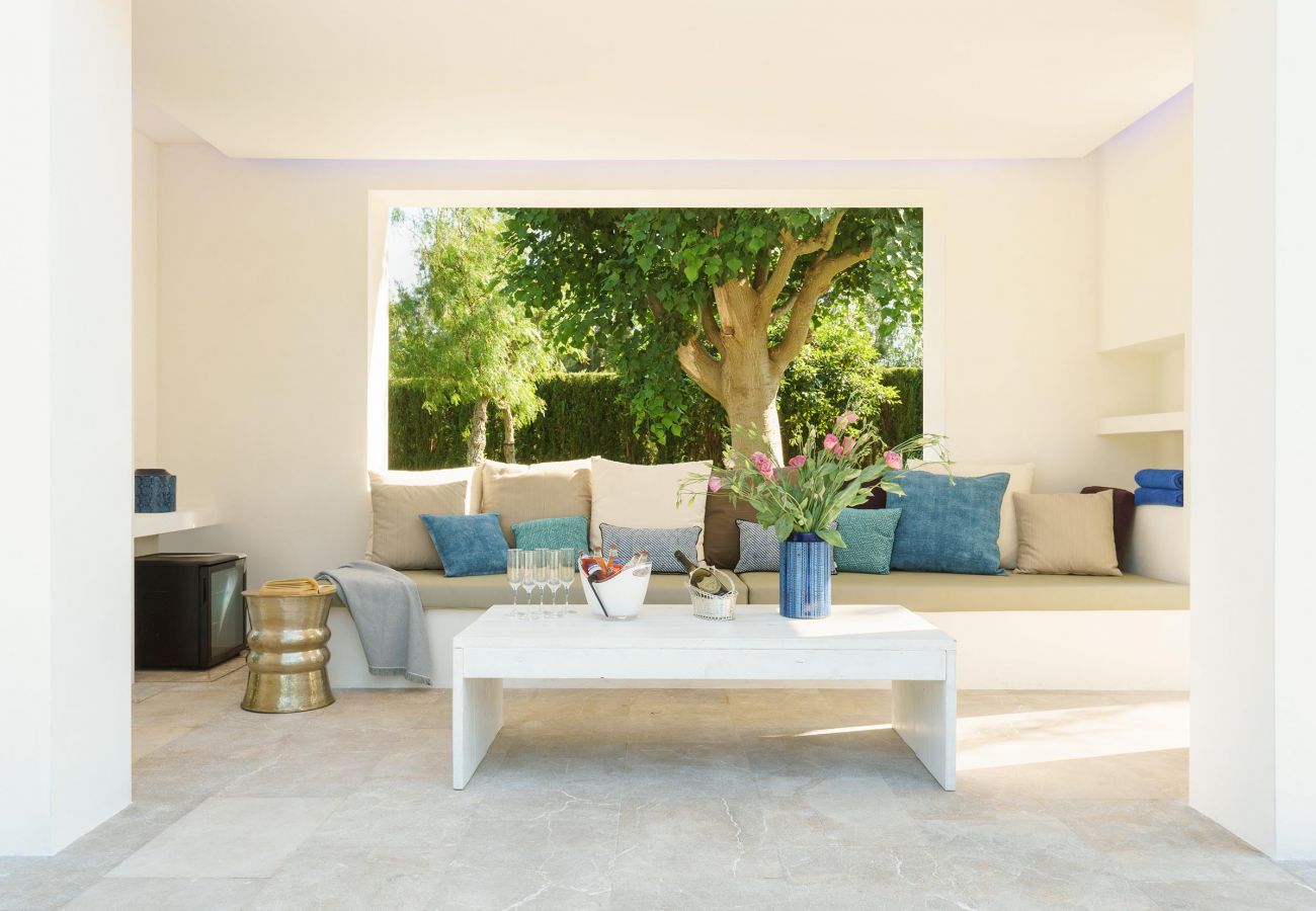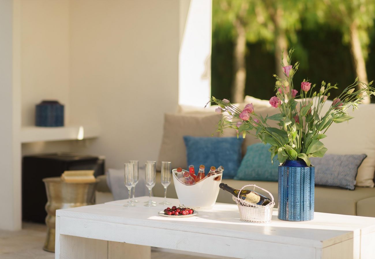 The interior of Villa Cori is to die for! Large rooms with neutral tones create a wonderful bright and spacious atmosphere perfectly complemented by eye catching splashes of colours from luxurious tones of gold and black to vibrant blues all tied together with elegant touches of detail.