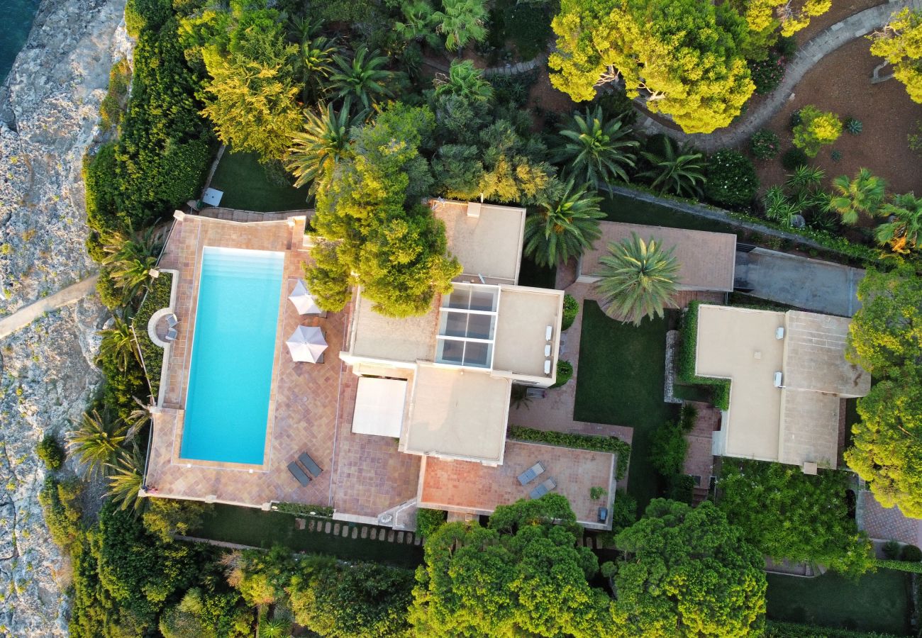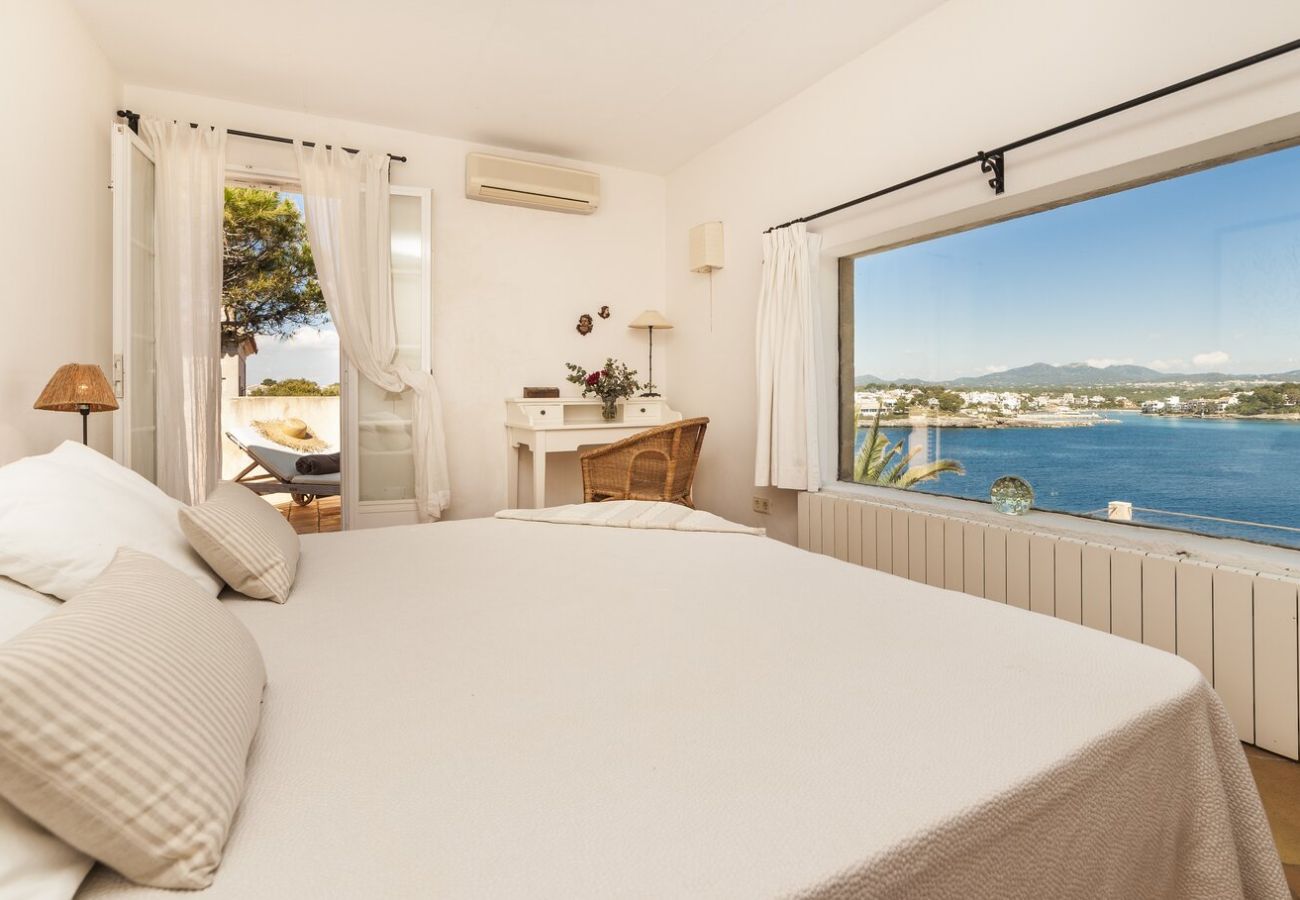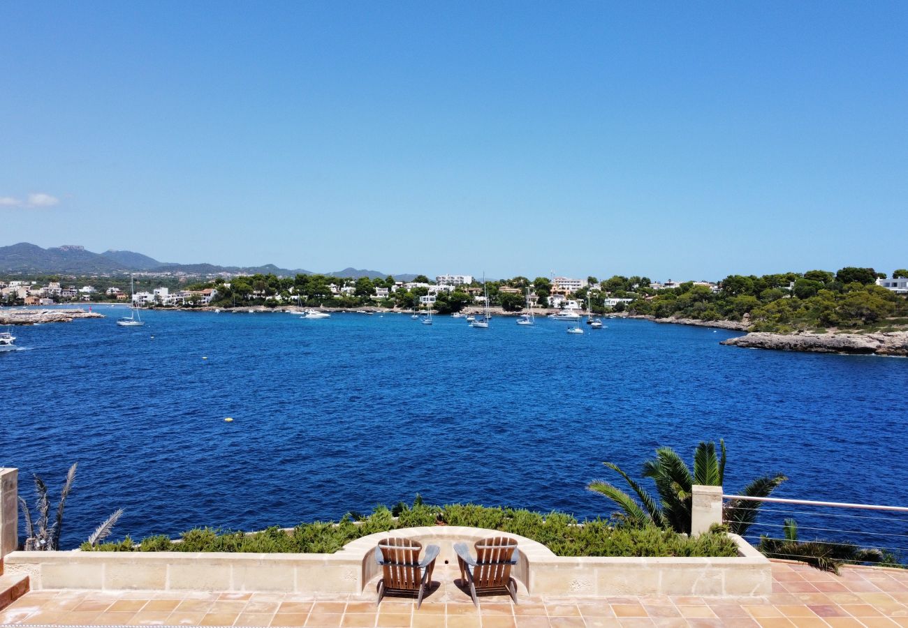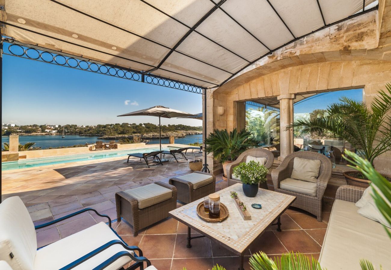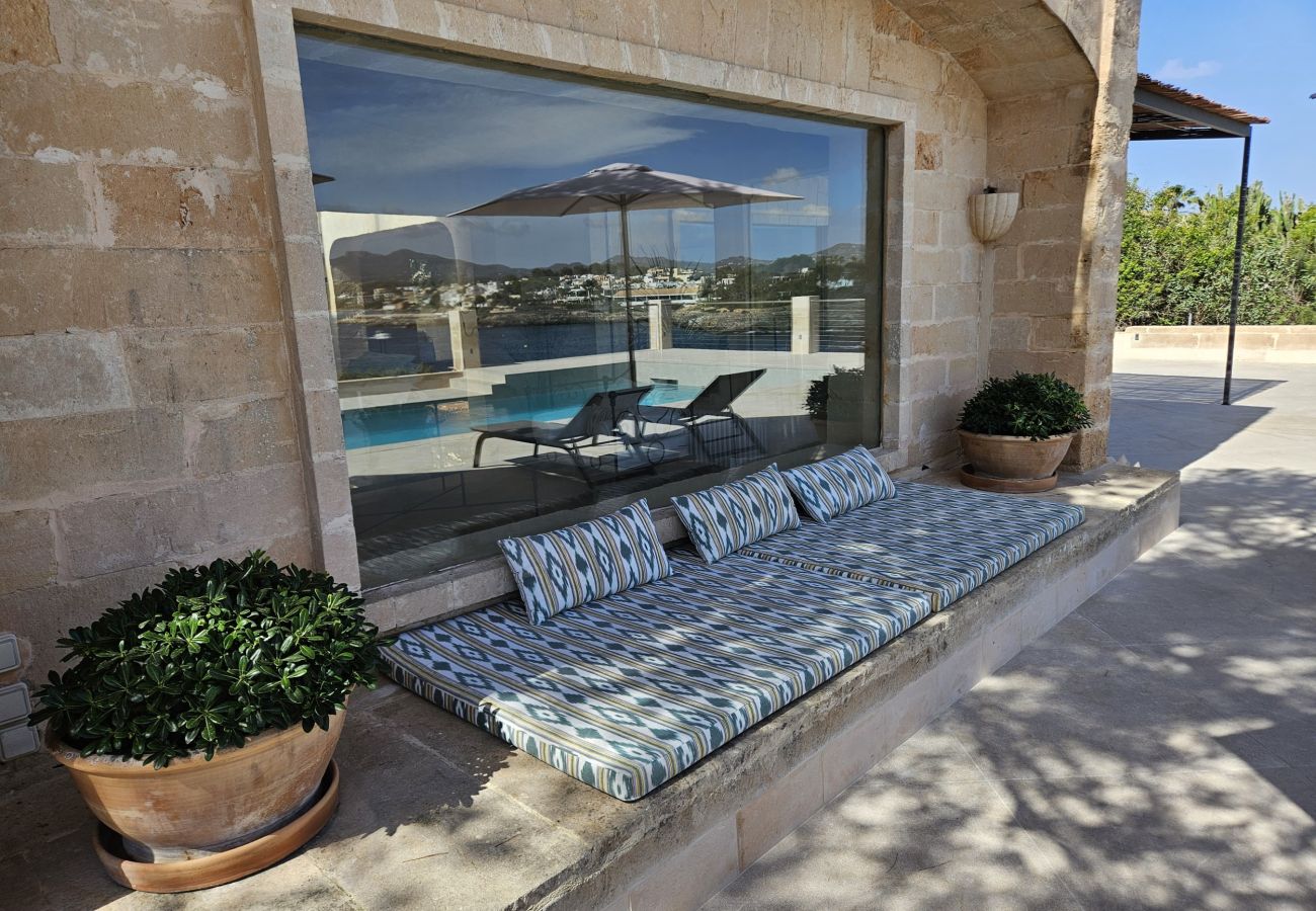 Villa Frontline Sa Torre is a modern new-fashioned holiday villa with a beautiful poolside area right in front of the sea in Porto Petro, Mallorca