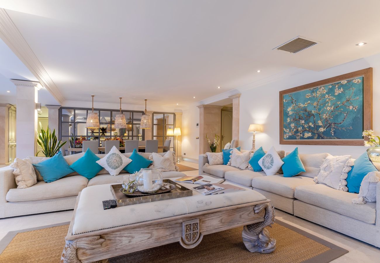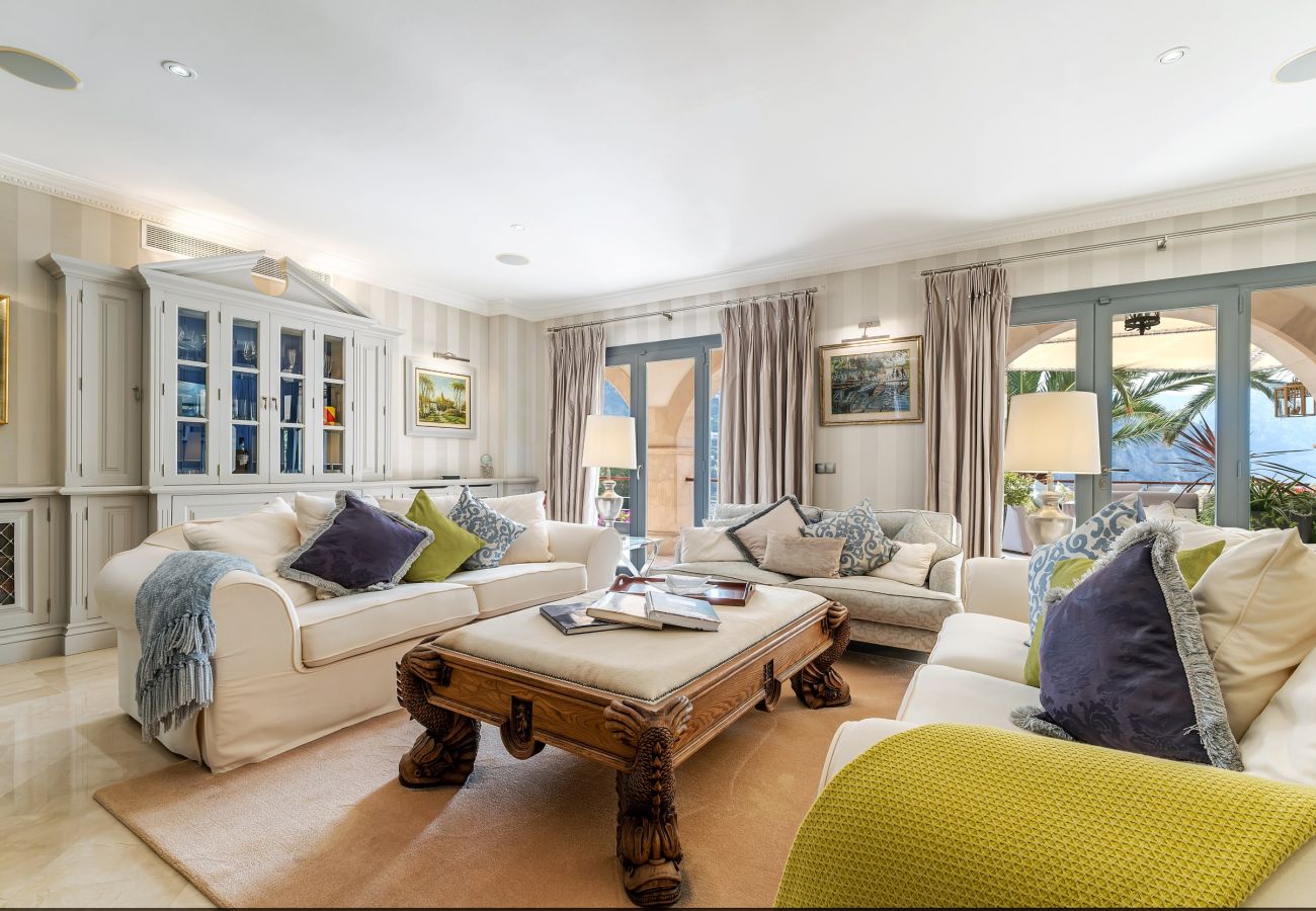 A triple height entrance hall with spiral staircase to the tower den offers 360 degree views of Port Andratx and Cala Marmassen with a large architectural skylight in the interior reception hall giving natural light throughout the day. 3 beautifully decorated bedrooms (Port, Starboard ́and La Mola - all en suite), large television lounge, cloakroom & guest WC, service kitchen, breakfast loggia and an expansive solarium (access from all rooms) offering spectacular sea and mountain views. The Courtyard Bedroom is also located on this level plus lift access to all principal floors.