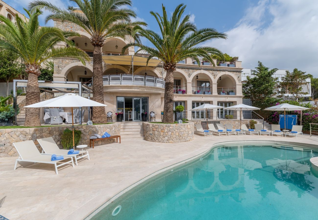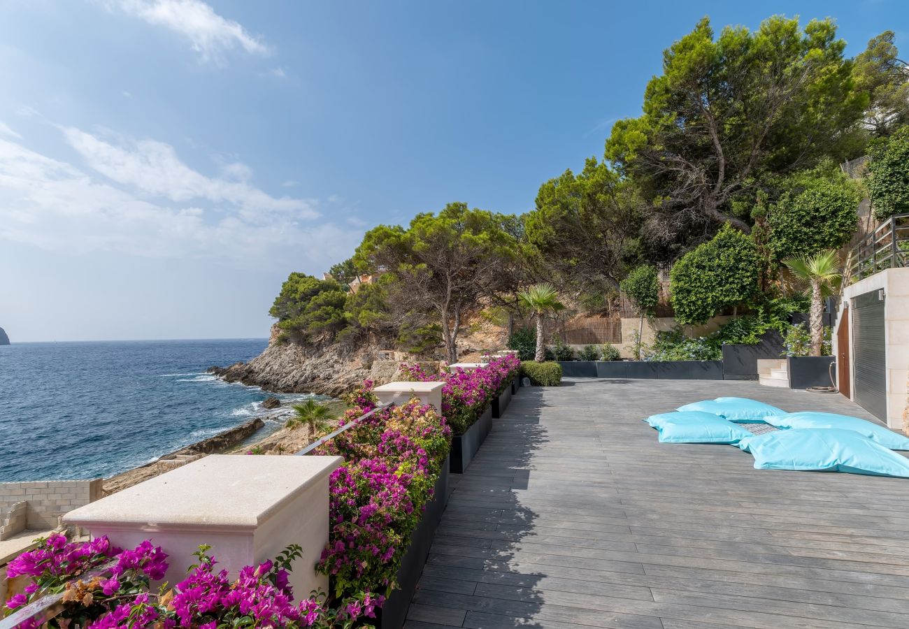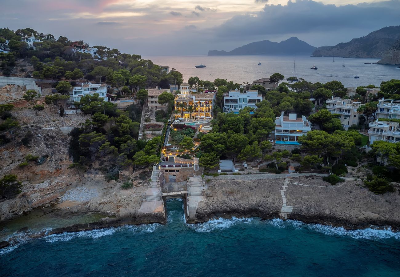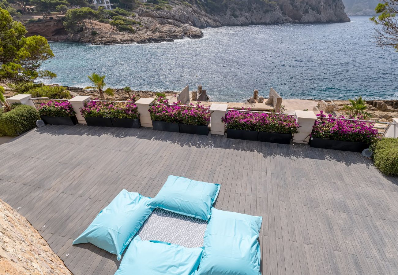 Situated in a dream location in front of the sea in the exclusive residential area of La Mola, this magnificent villa offers stunning views over the tranquil bay of Cala Marmassenand is just 1 minute away from the vibrant and cosmopolitan Port Andratx. Cala Marmassen does not have a true sandy beach and as such, the bay retains its feeling of privacy and seclusion throughout the year with tourists and boats tending to favour other locations. Private access to the sea, private boat dock and mooring is via a few flights of steps through mature, terraced gardens.