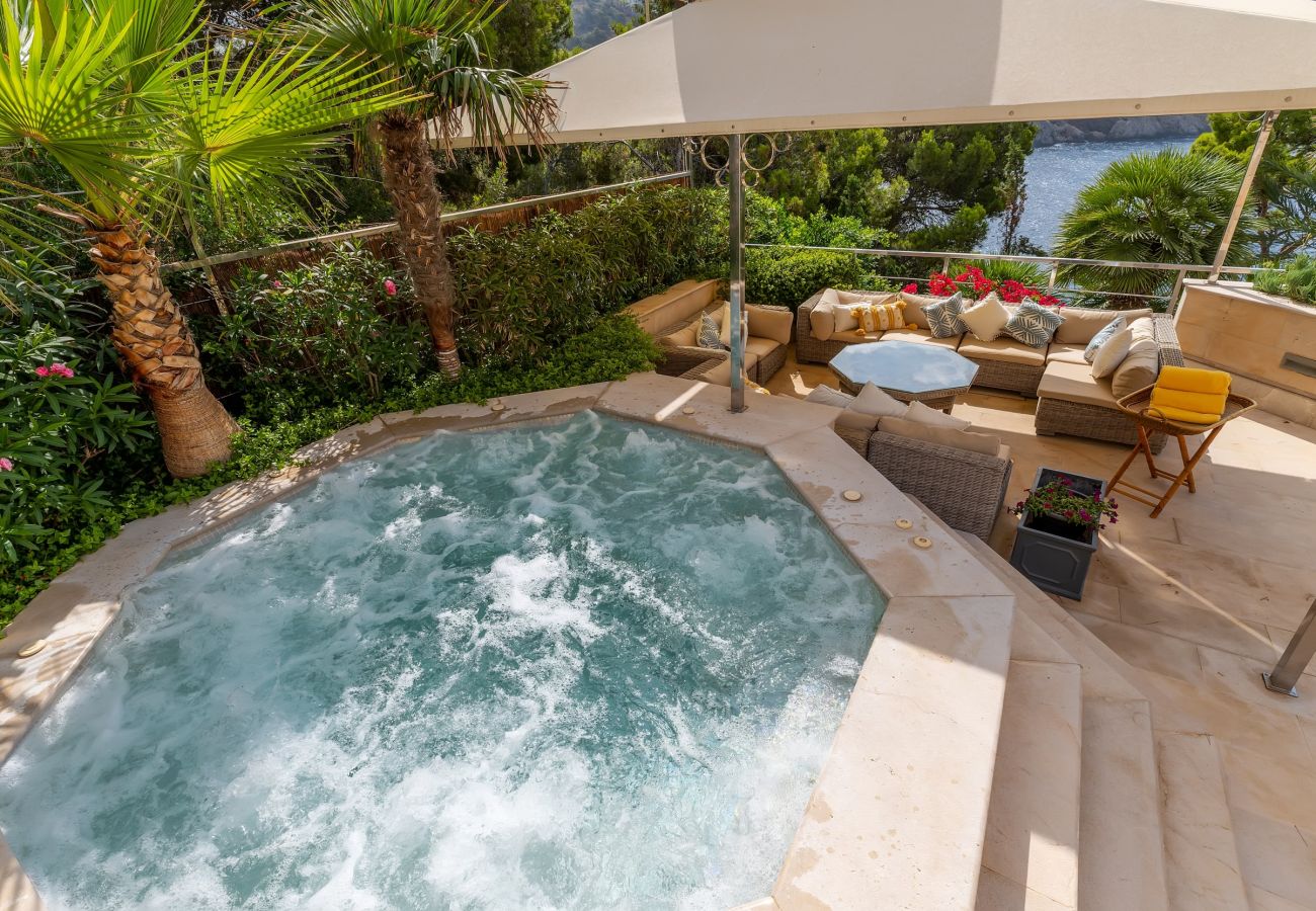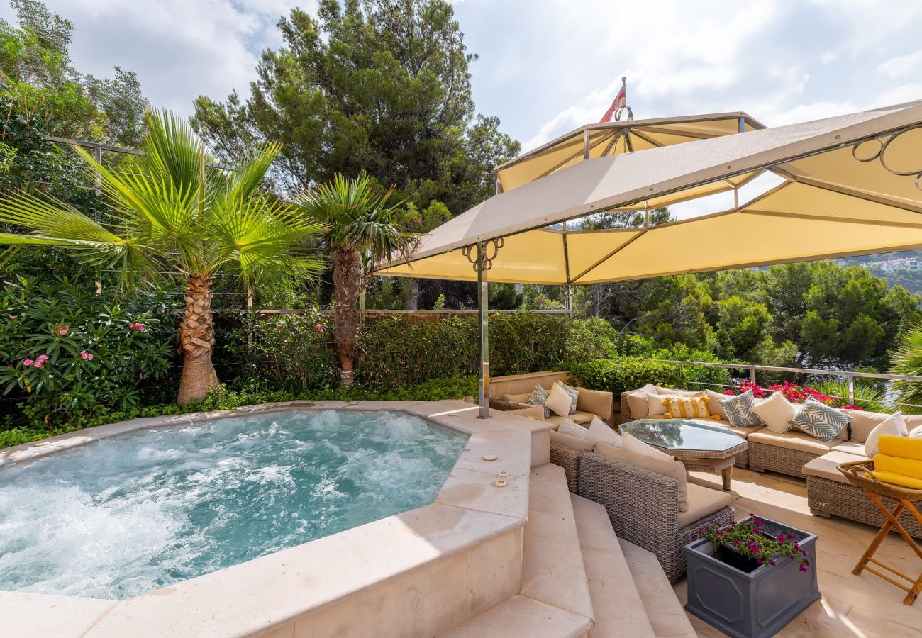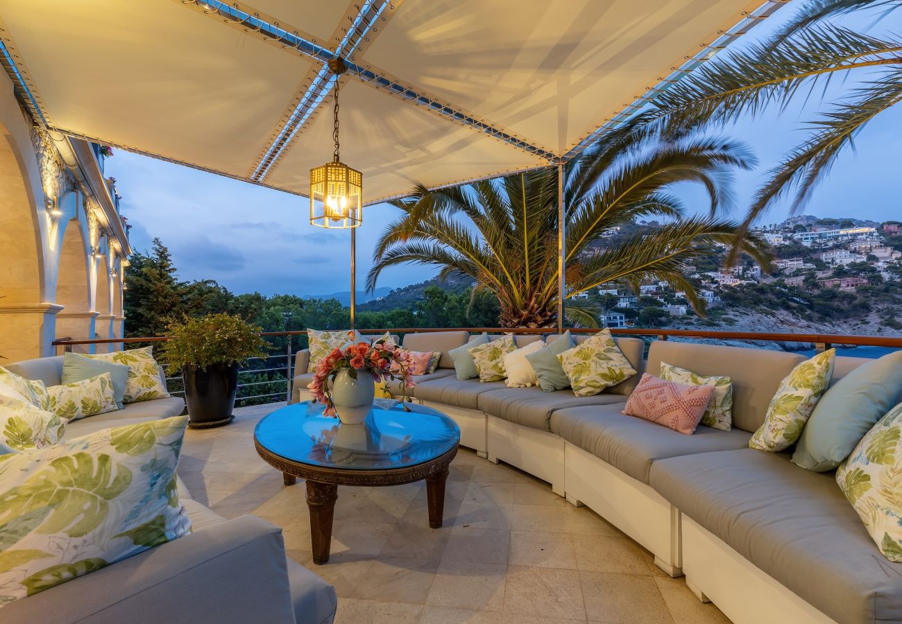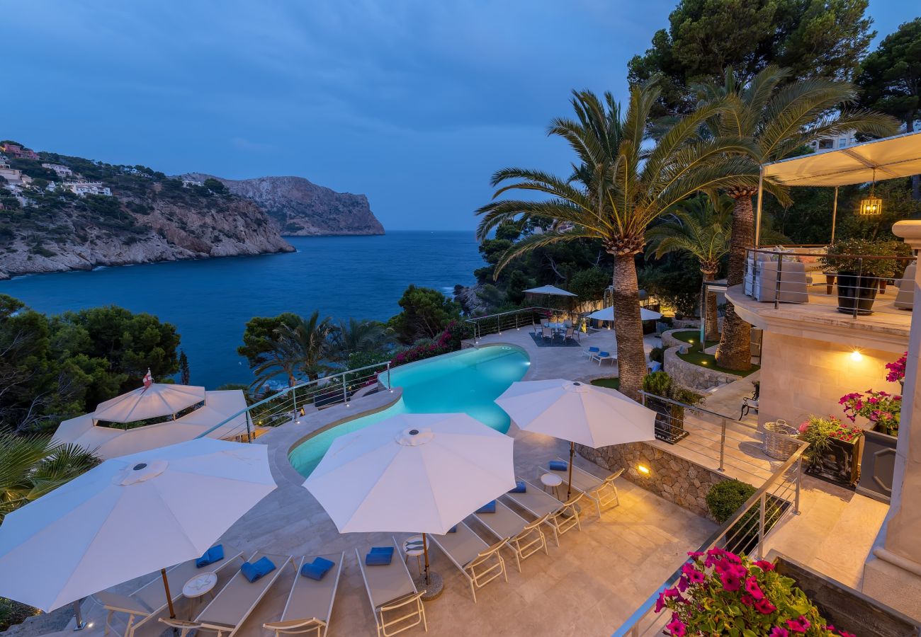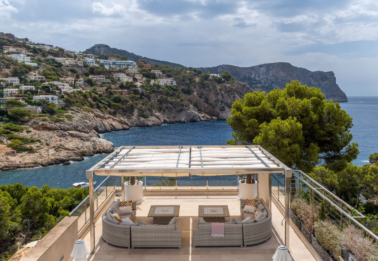 Situated in a dream location in front of the sea in the exclusive residential area of La Mola, this magnificent villa offers stunning views over the tranquil bay of Cala Marmassenand is just 1 minute away from the vibrant and cosmopolitan Port Andratx. Cala Marmassen does not have a true sandy beach and as such, the bay retains its feeling of privacy and seclusion throughout the year with tourists and boats tending to favour other locations. Private access to the sea, private boat dock and mooring is via a few flights of steps through mature, terraced gardens.