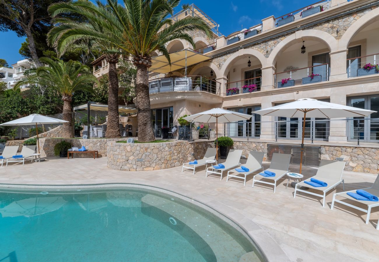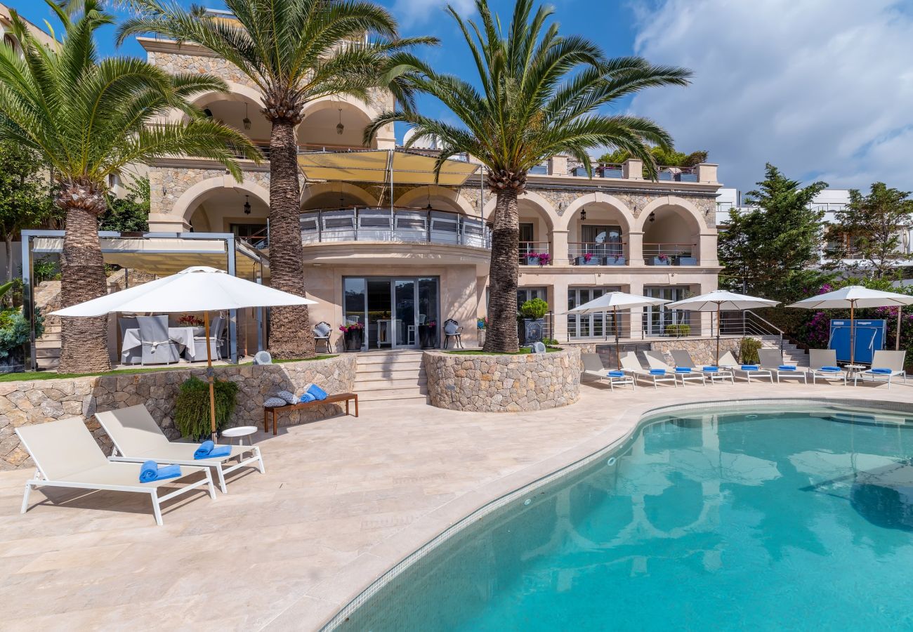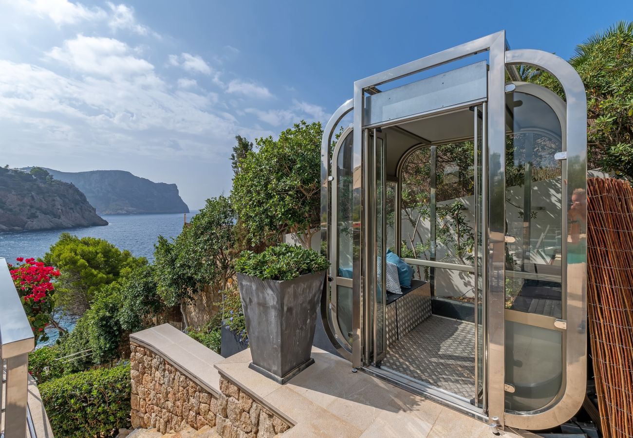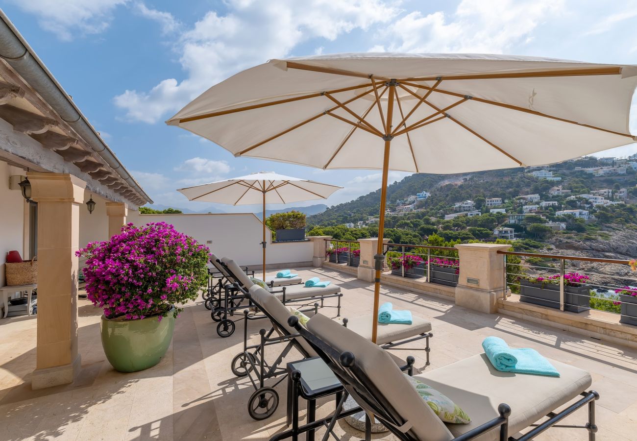 Situated in a dream location in front of the sea in the exclusive residential area of La Mola, this magnificent villa offers stunning views over the tranquil bay of Cala Marmassenand is just 1 minute away from the vibrant and cosmopolitan Port Andratx. Cala Marmassen does not have a true sandy beach and as such, the bay retains its feeling of privacy and seclusion throughout the year with tourists and boats tending to favour other locations. Private access to the sea, private boat dock and mooring is via a few flights of steps through mature, terraced gardens.