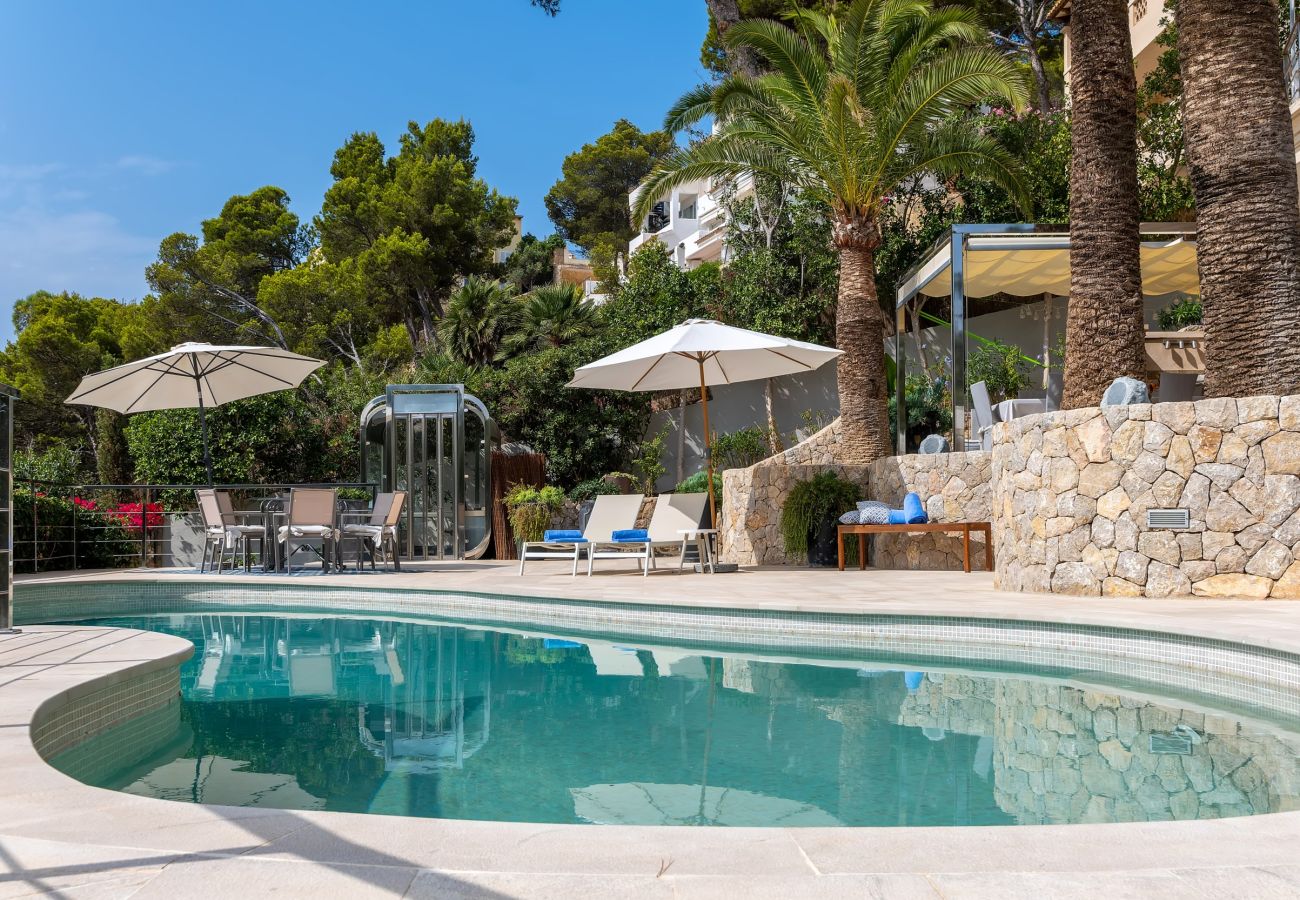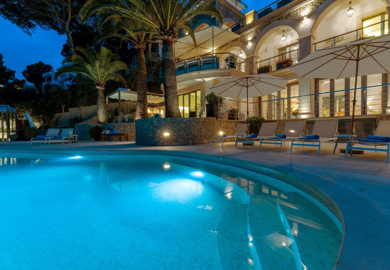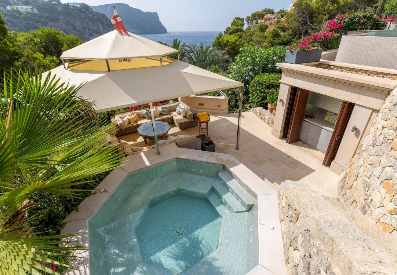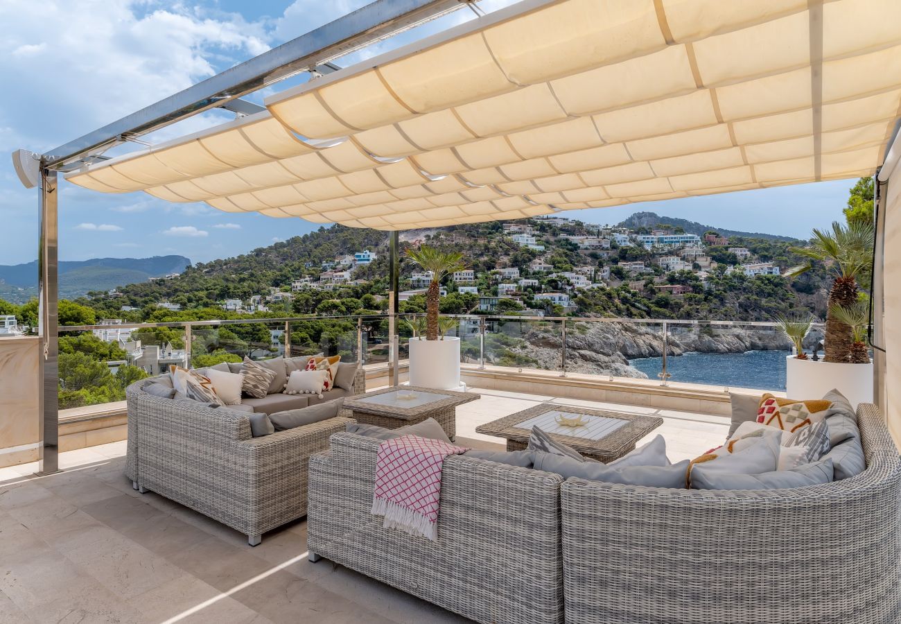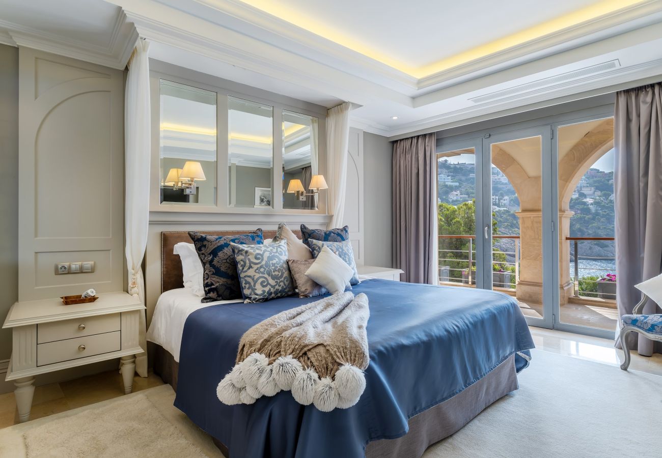 Situated in a dream location in front of the sea in the exclusive residential area of La Mola, this magnificent villa offers stunning views over the tranquil bay of Cala Marmassenand is just 1 minute away from the vibrant and cosmopolitan Port Andratx. Cala Marmassen does not have a true sandy beach and as such, the bay retains its feeling of privacy and seclusion throughout the year with tourists and boats tending to favour other locations. Private access to the sea, private boat dock and mooring is via a few flights of steps through mature, terraced gardens.
