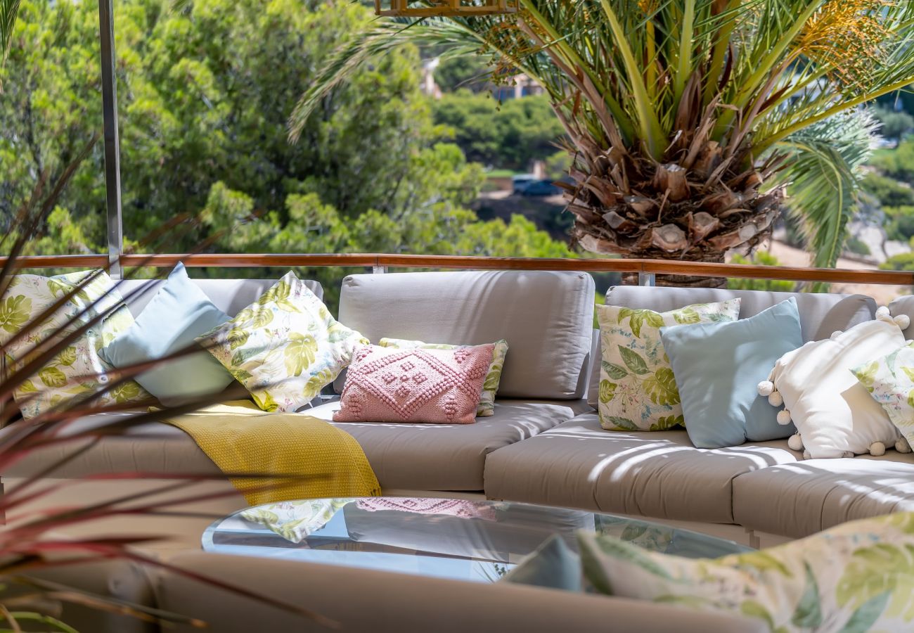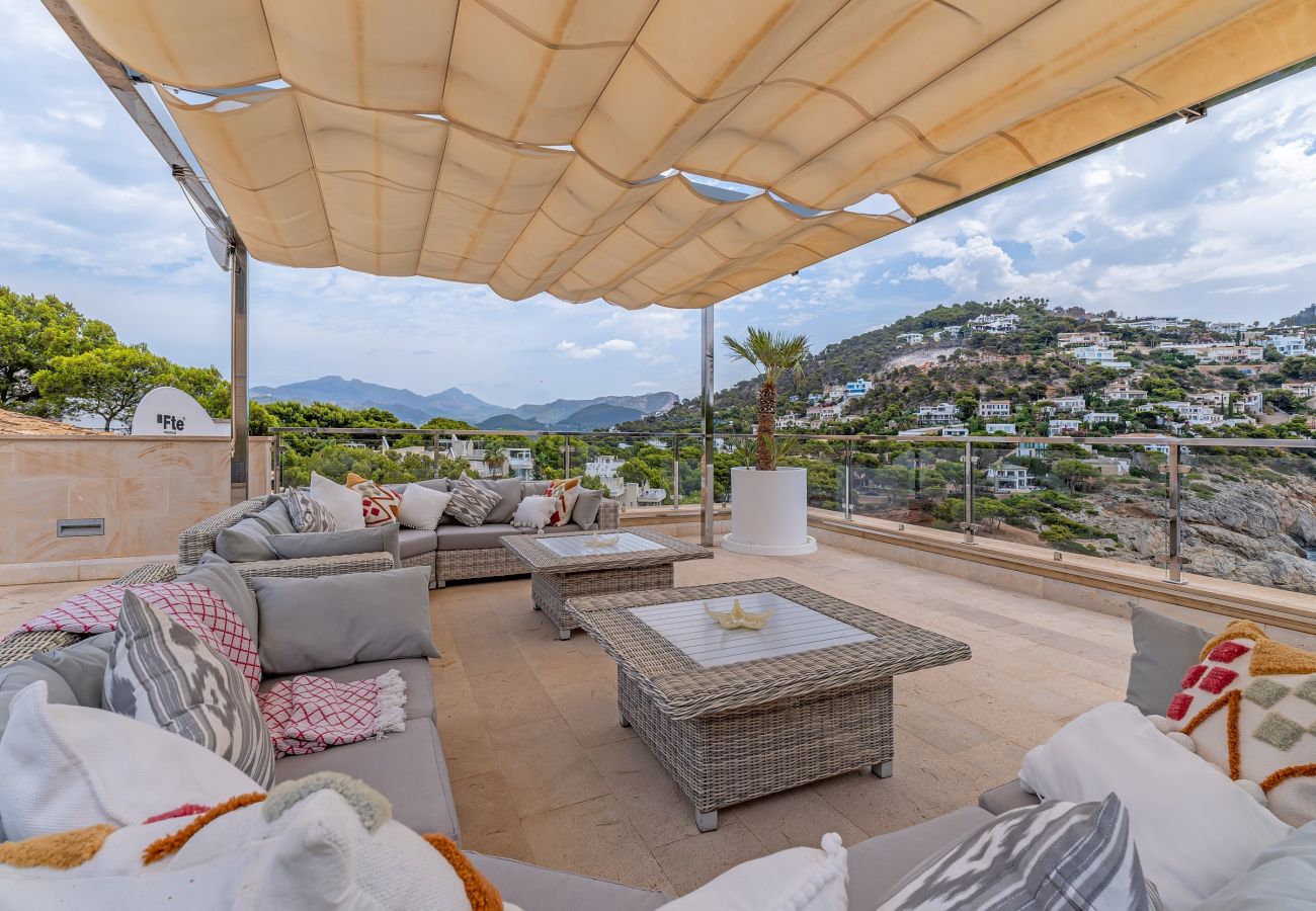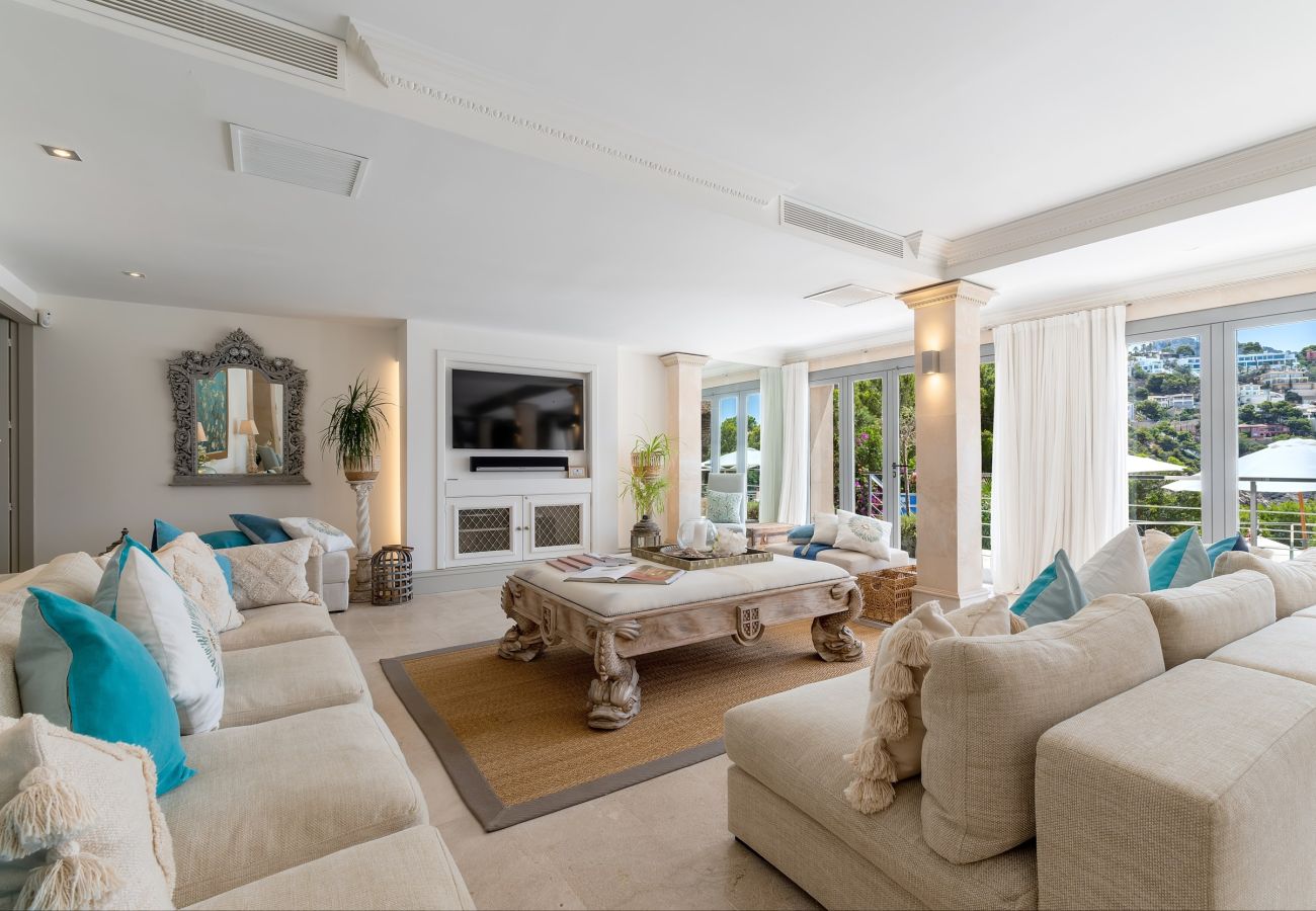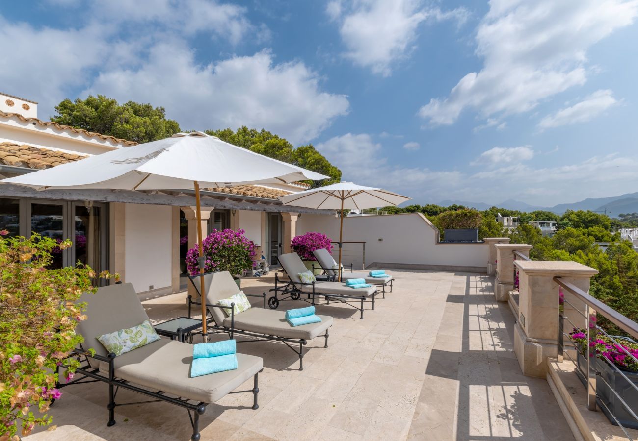 Situated in a dream location in front of the sea in the exclusive residential area of La Mola, this magnificent villa offers stunning views over the tranquil bay of Cala Marmassenand is just 1 minute away from the vibrant and cosmopolitan Port Andratx. Cala Marmassen does not have a true sandy beach and as such, the bay retains its feeling of privacy and seclusion throughout the year with tourists and boats tending to favour other locations. Private access to the sea, private boat dock and mooring is via a few flights of steps through mature, terraced gardens.