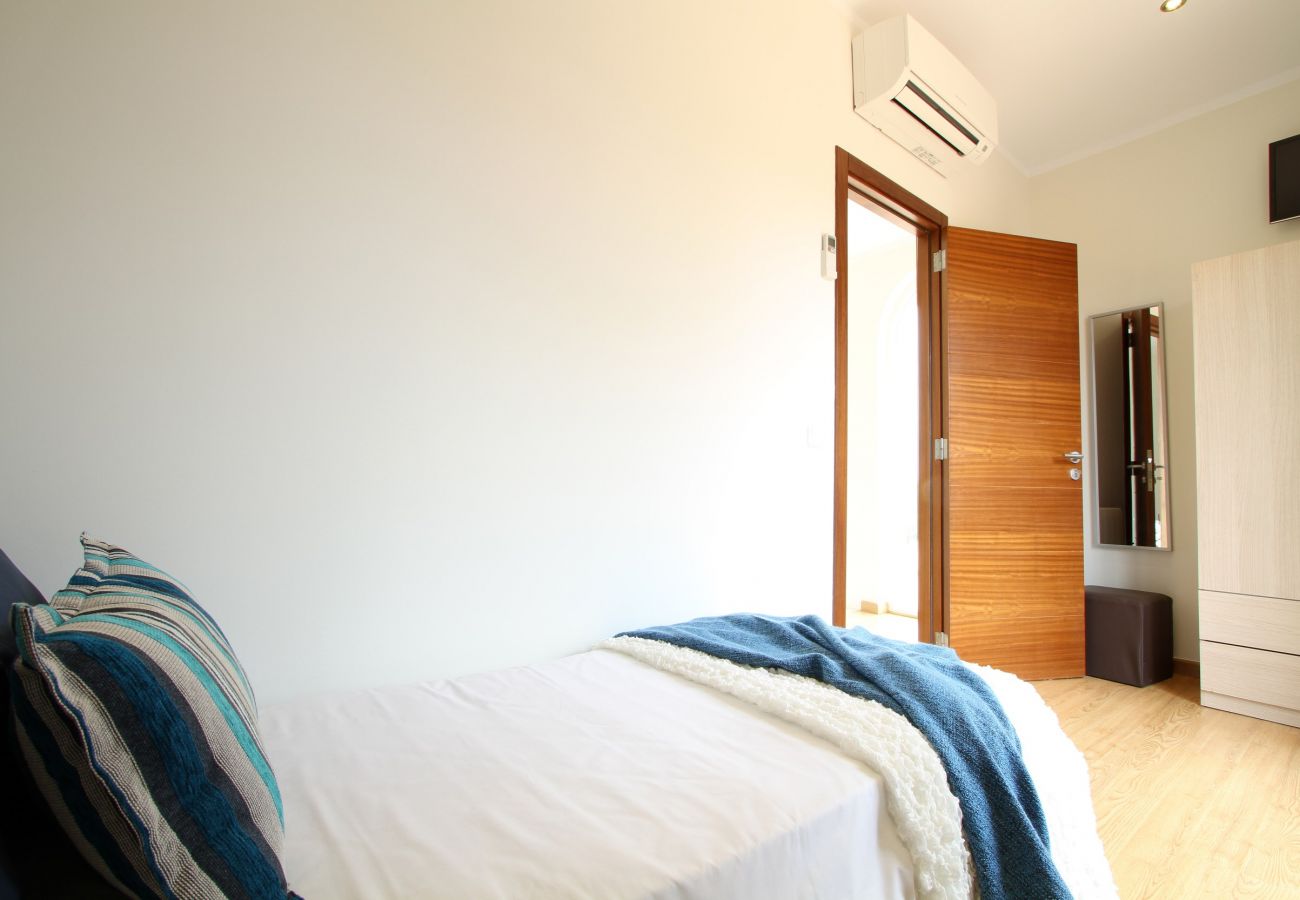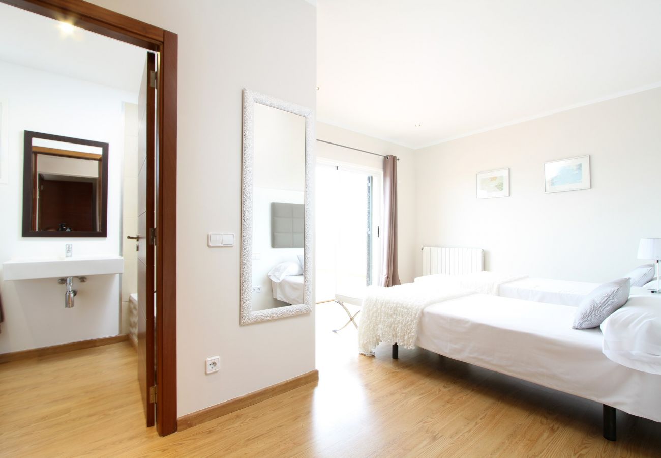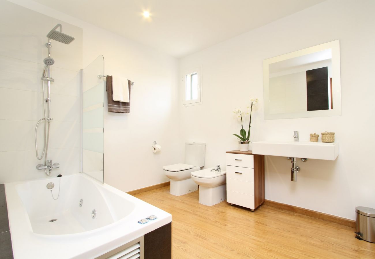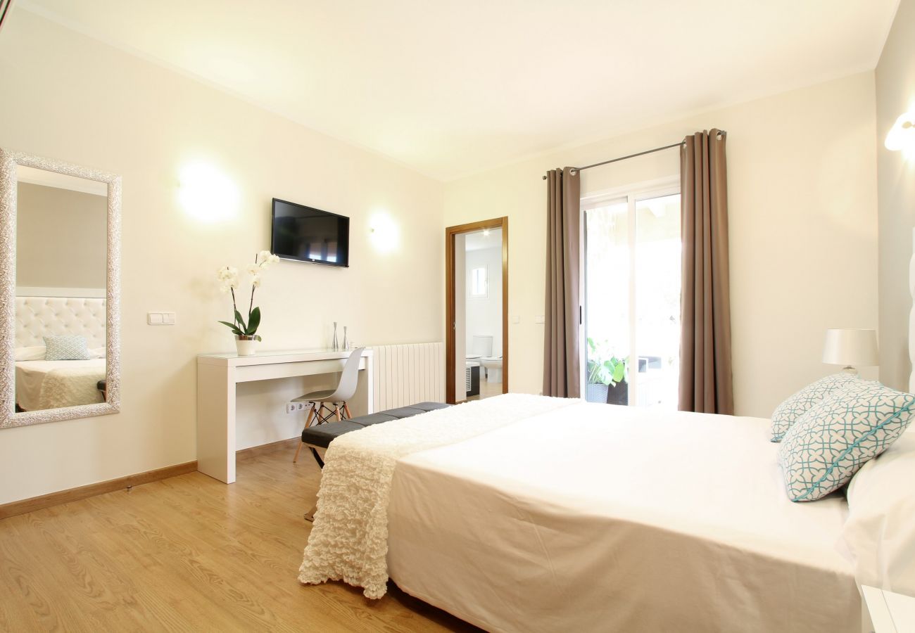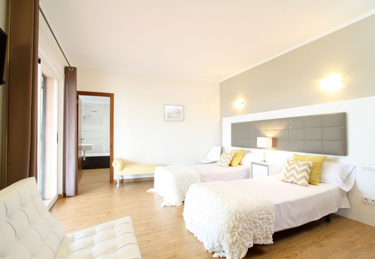 All the bedrooms are light, bright and airy and some lead out to the fabulous large balcony with great views of the Mallorcan countryside and Mediterranean Sea. (Altogether there are a total of 6 double beds plus 1 bunk bed, sleeping up to 12 guests.)